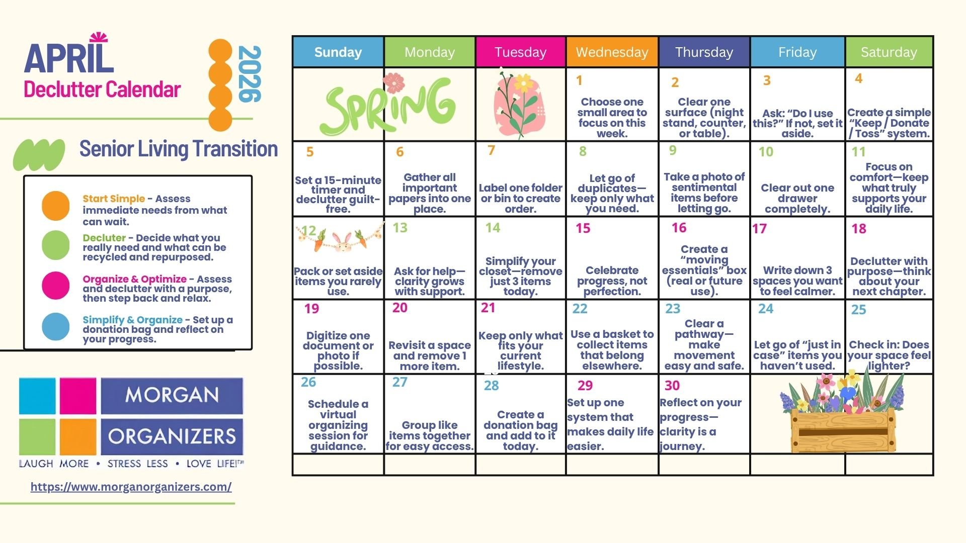 MORGAN ORGANIZERS helps seniors plan and accomplish downsizing and transitioning to assisted or independent living.