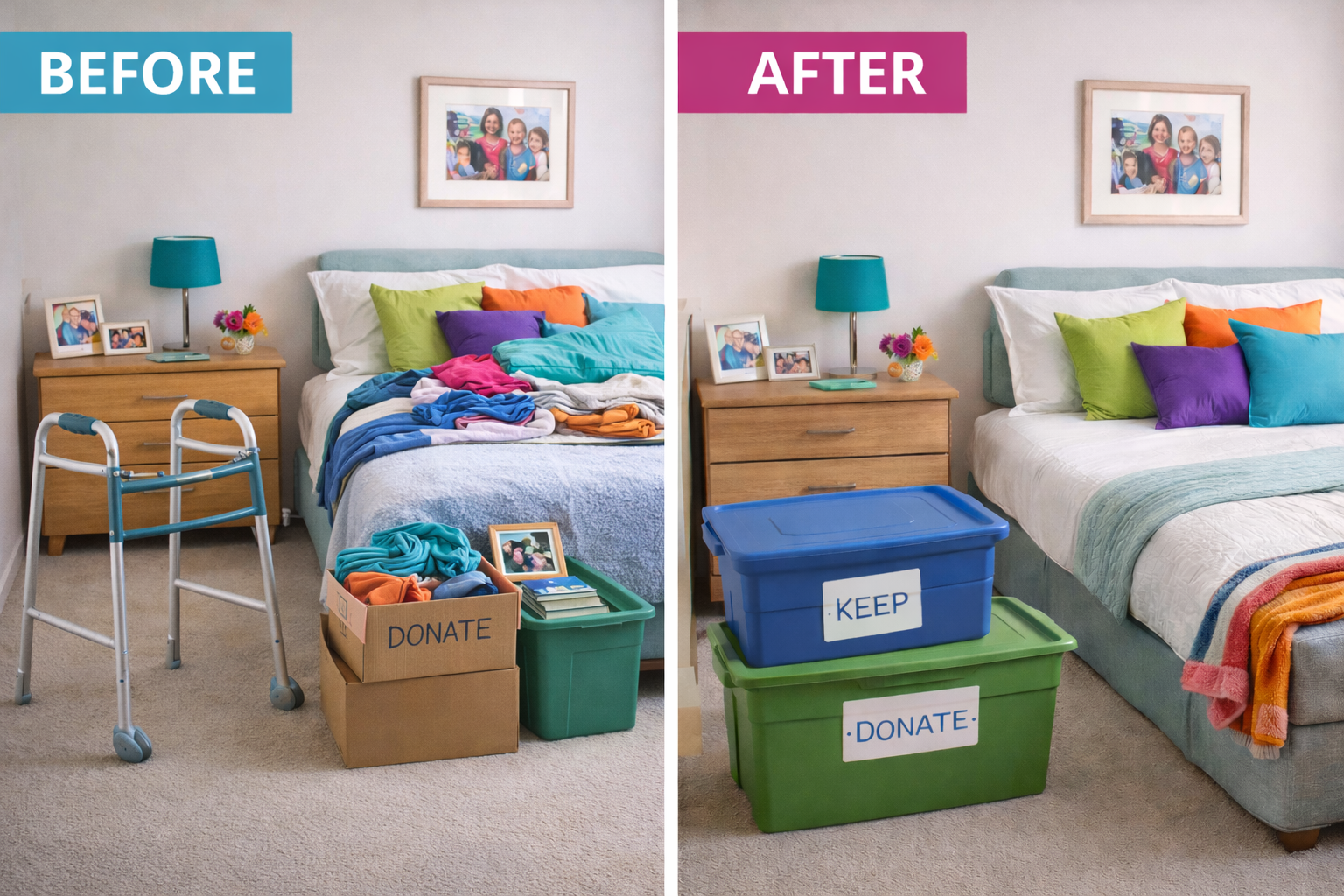 We assist in determining what to keep, donate, sell, distribute to family members, or responsibly discard. Decisions are organized around safety, space limitations, functionality, and personal significance.